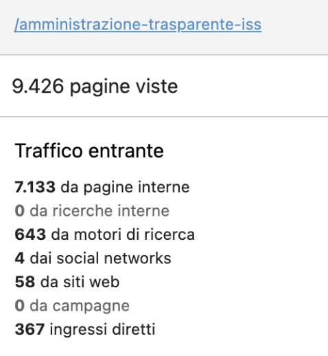 DATI SUL MONITORAGGIO DELLE STATISTICHE DI UTILIZZO DEL SITO ISS.IT: