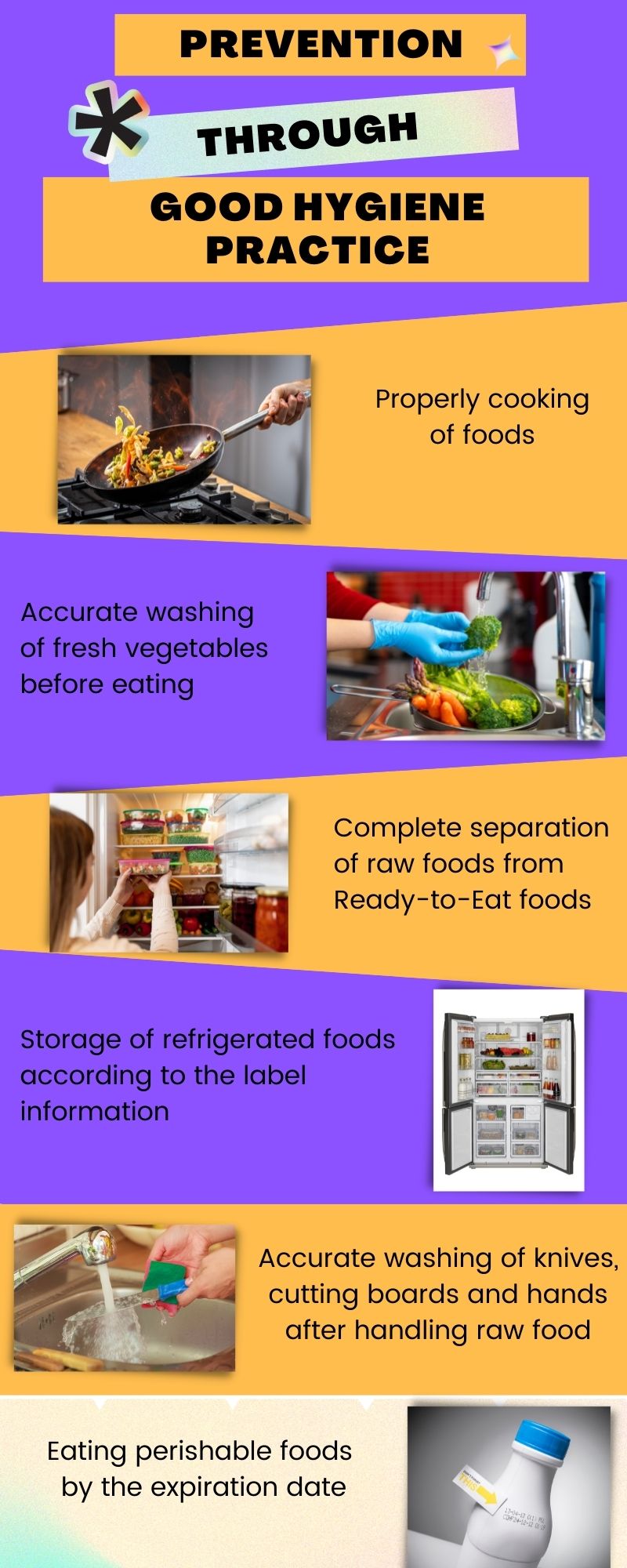 The best strategy to fight listeriosis passes through an efficient prevention, which can be easily implemented by applying the general rules of hygiene and the precautions required for all other foodborne infections (see the infographic).