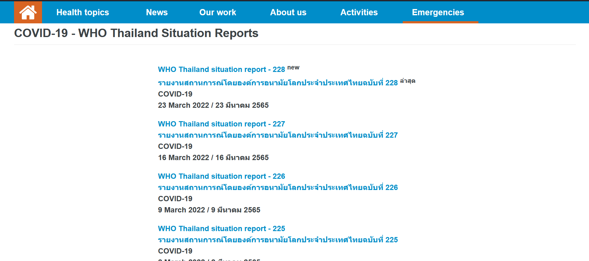 COVID-19 - WHO Thailand Situation Reports - ISS-G20 Laboratorium Repository
