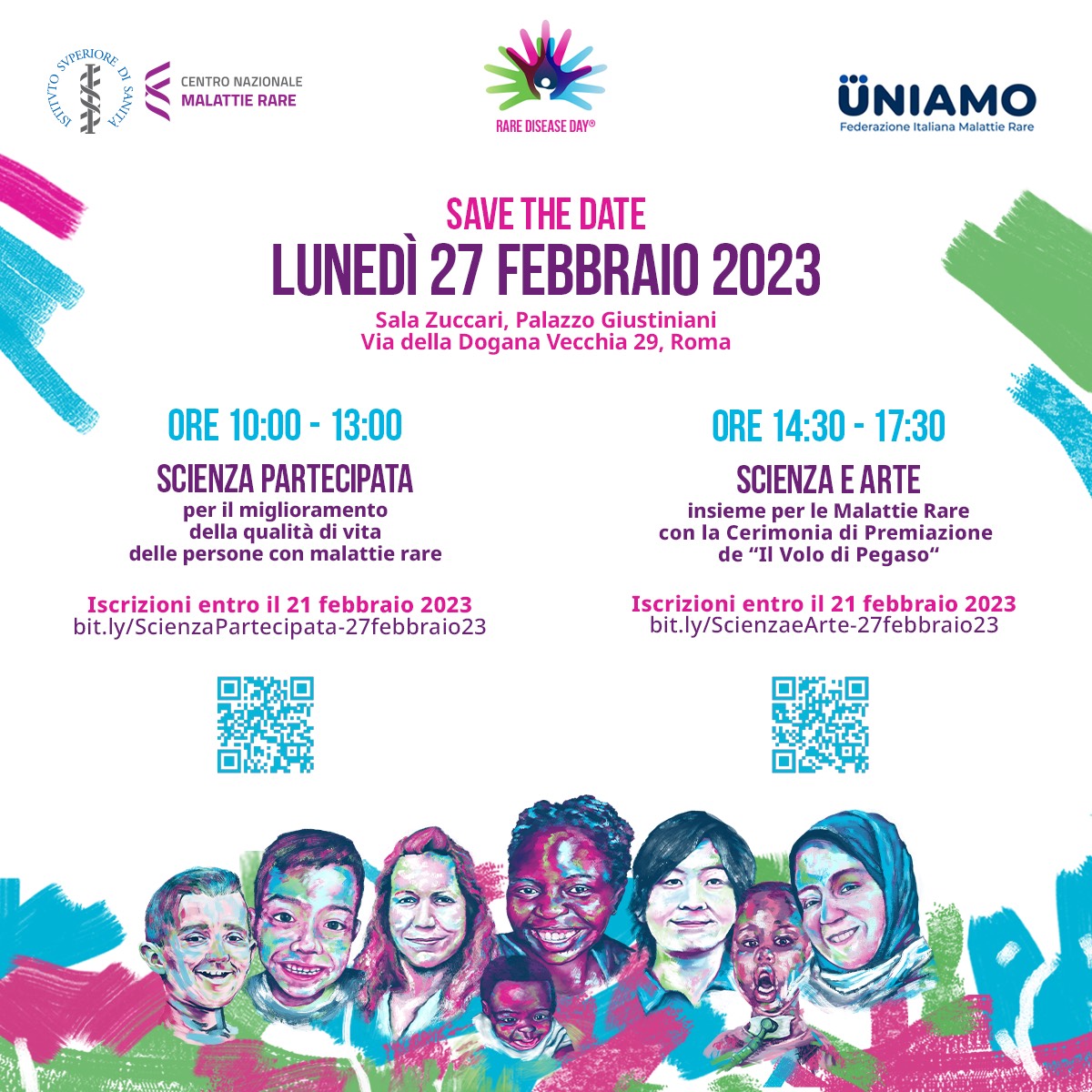 Per informazioni e iscrizioni relative ad entrambi gli eventi (Scienza Partecipata ore 10-13 e Scienza e Arte 14:30-17:30) organizzati da ISS e UNIAMO, è possibile visitare la pagina https://www.malattierare.gov.it/eventi/dettaglio/5171.