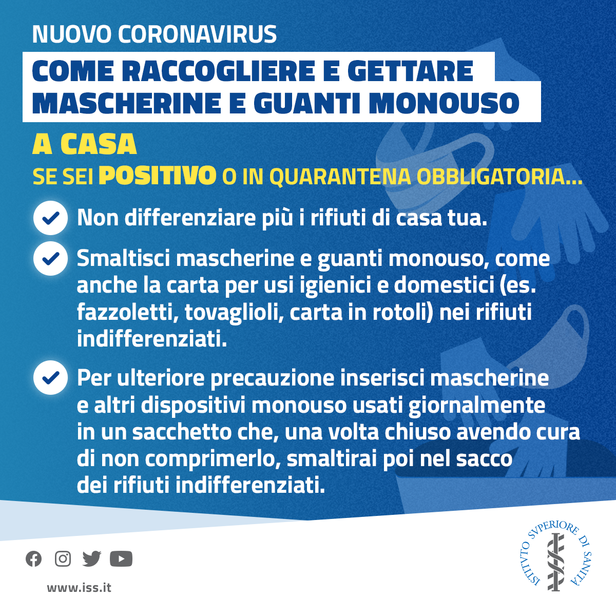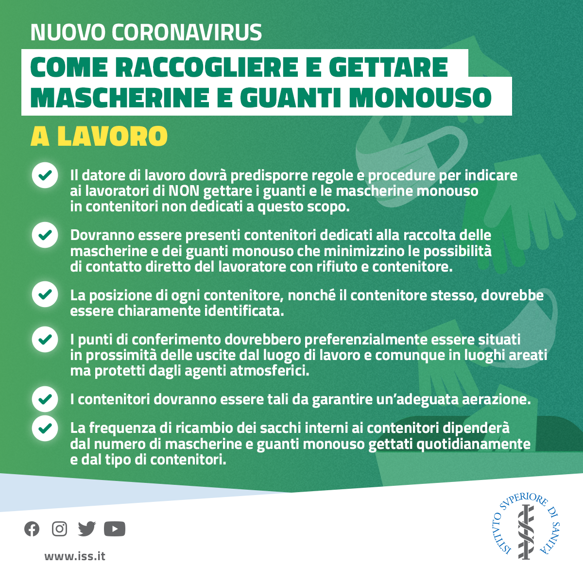 ISS, 9 dicembre 2020 - Al lavoro e a casa: tre infografiche su come smaltire questi rifiuti, anche in caso di positività al virus