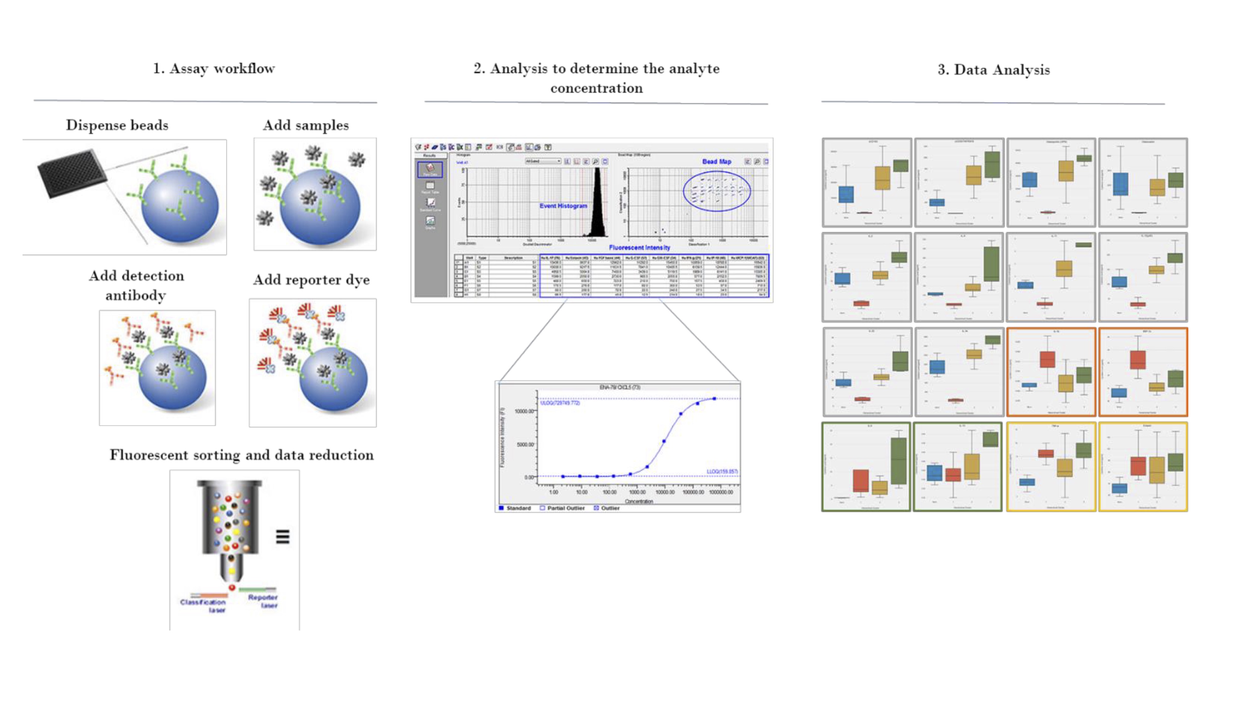 Il sistema Bio-Plex® (Bio-Rad Laboratories, USA) è una piattaforma basata sulla tecnologia xMAP® di Luminex. L’uso di biglie magnetiche e di un sistema di lettura a fluorescenza, consente l’analisi multiplex di fino a 500 analiti in un singolo pozzetto – tra cui proteine, citochine, anticorpi e acidi nucleici – utilizzando piccole quantità di campione (da 12,5 a 50 µl).